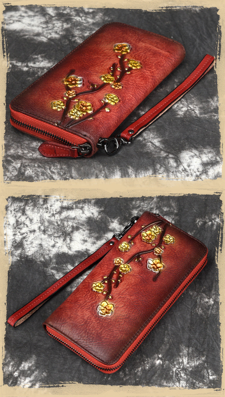 Embossed Leather Multiple Card Slots Wallet First Layer Cowhide Women's Handbag