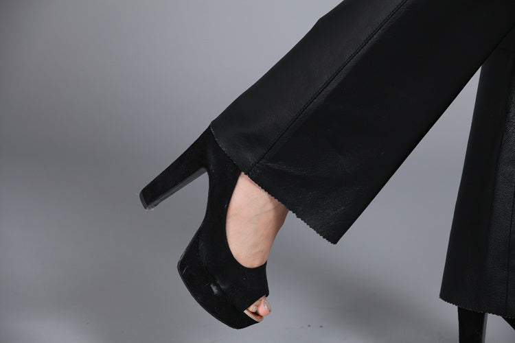 Fashion Women's Solid Color Bootcut Leather Suit Leather Pants