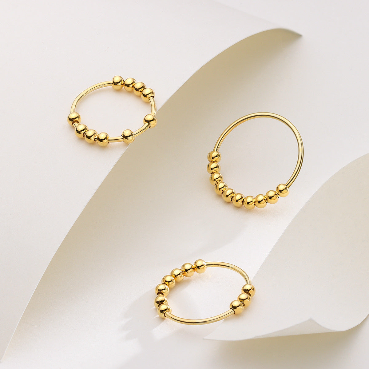 S925 Sterling Silver Ten Beads Relieve Anxiety Lucky Ring