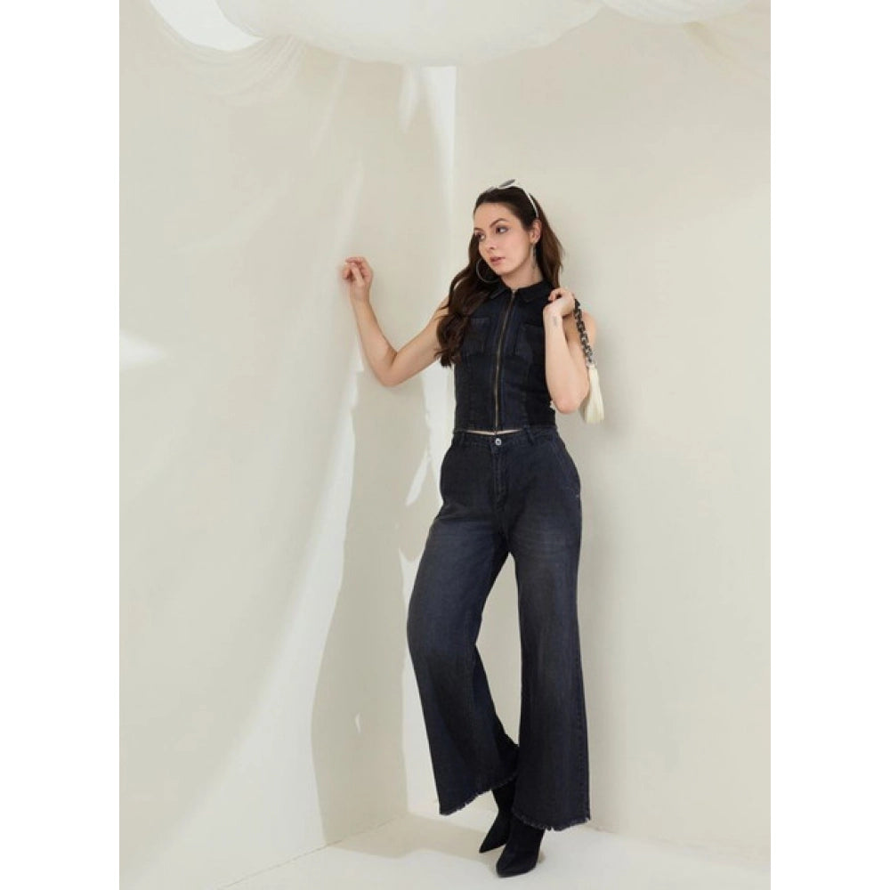 Women's Denim Lycra Solid Sleeveless Top (Black)