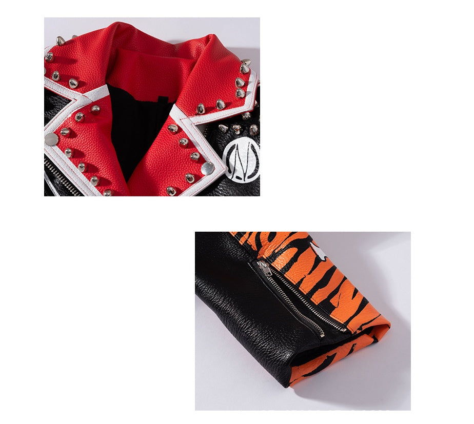 Women's Suit Collar Slim Long-sleeved PU Jacket
